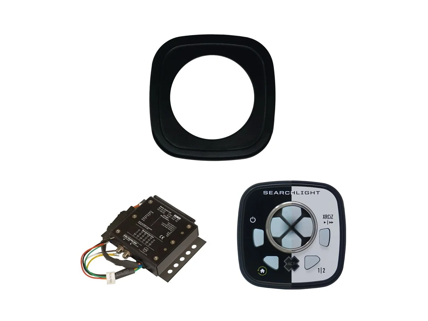 The retrofit kit allows RCL-100 LED and RCL-50 LED owners that have the old URP-102 point pad and URC-103 master controller to update their existing searchlight system. The kit includes the URP-103 retrofit plate cover which securely houses the new URP-103 point pad while concealing the original URP-102 mounting hole, ensuring a neat and seamless installation on the console. The URC-104 Master Controller maintains the same mounting pattern as the URC-103, allowing for simple replacement. The URP-103 point pad is supplied with adhesive faceplates in black and white. Choose your faceplate of choice that best matches with your console and simply adhere it to the point pad to help maintain a unified and consistent look and feel on your vessel (NOTE: The image currently on screen shows is purely an example of what the point pad looks like when either the black or white faceplate is installed — there is no actual faceplate that is half black and half white).