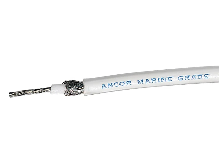 Coaxial cable is made from premium tinned copper center conductor as well as tinned copper outer braid for corrosion resistance and easy soldering. It features signal loss ratios of up to 50 percent less than other coaxial cables. 96 percent braid provides best signal strength and least interference with UV inhibited white jacket for longest life. Ancor recommends RG 8X for VHF runs less than 50 feet.