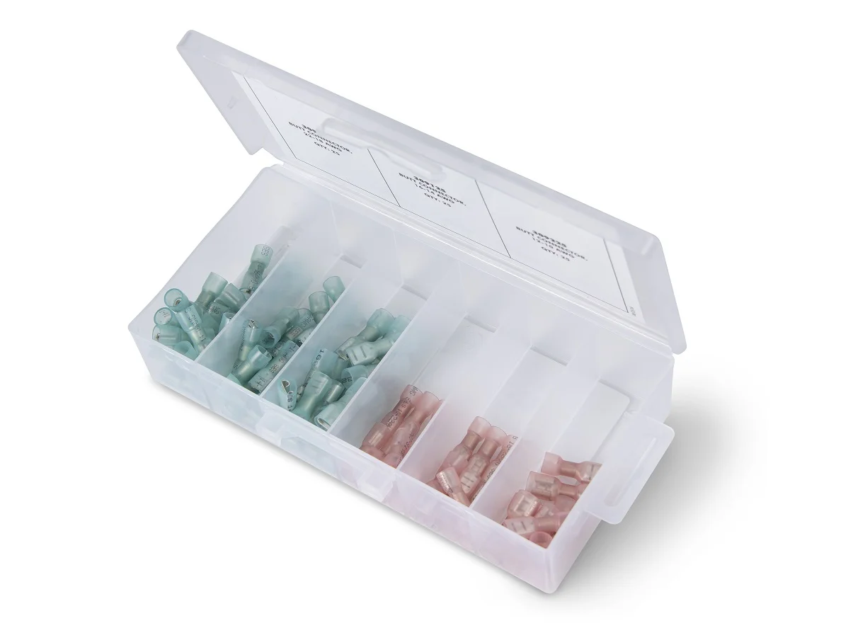Ancor heat shrink connectors offer heat activated adhesive built into the sleeve of the heat shrink tubing. When heated, these connectors form a water tight seal and the ultimate vibration and strain relief.
