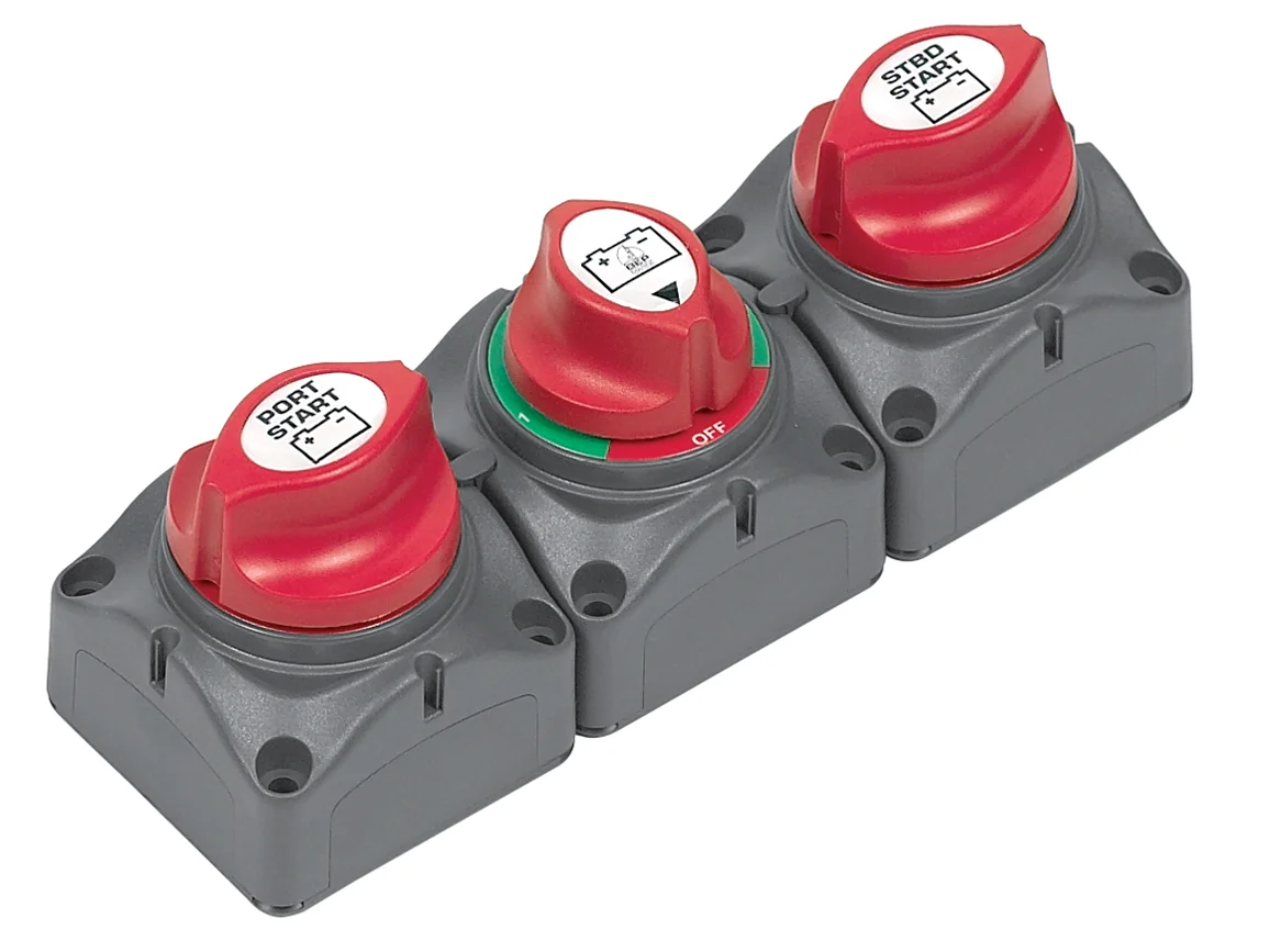 The 715-S allows you to switch the house loads between port and starboard batteries. You can also use the selector switch to parallel the batteries .