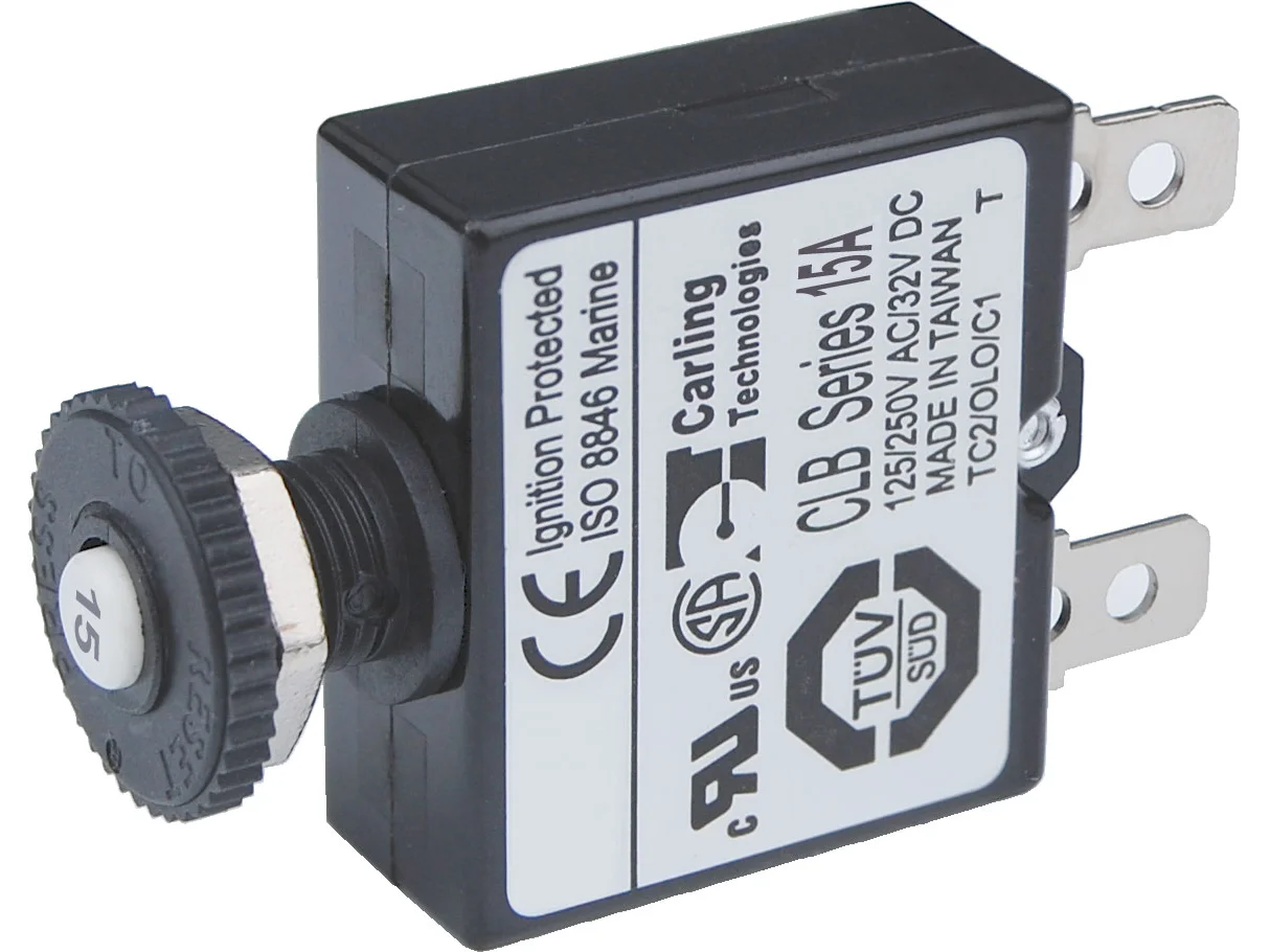 Blue Sea Push Button Reset Only Quick Connect Circuit Breaker – 15 Amps
