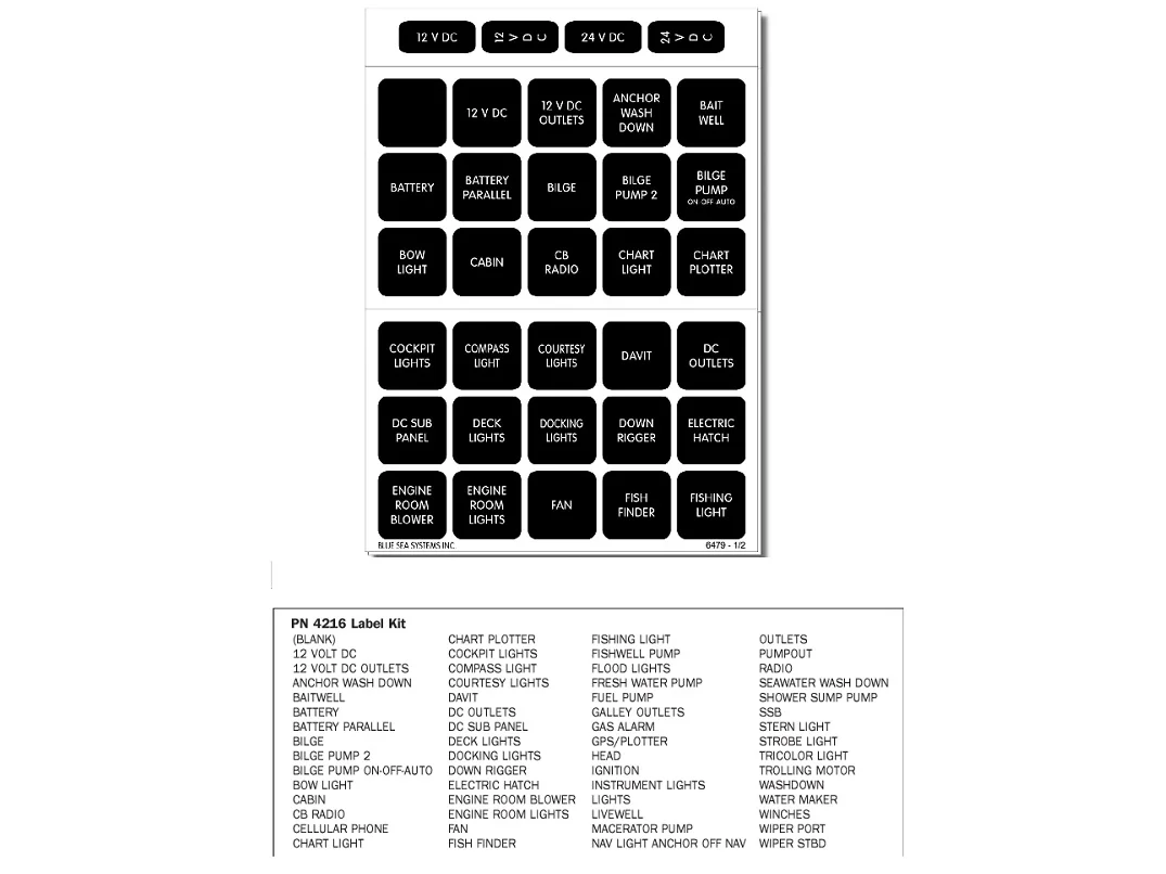 Blue Sea 4216 Label Kit DC H2O 60 Square Black