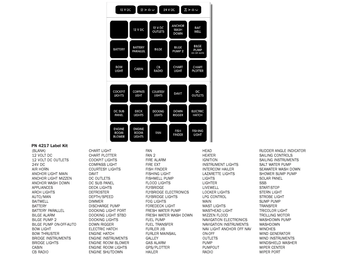 Blue Sea Waterproof DC Label Kit – 120 Black Square Labels