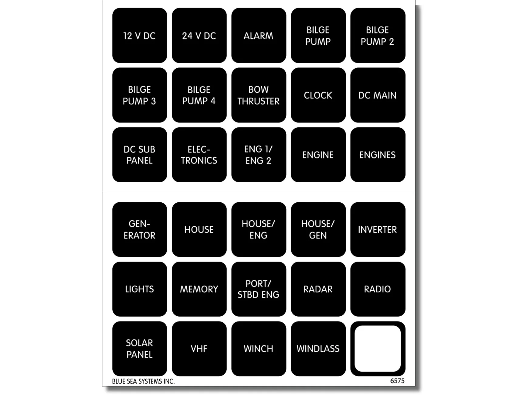 Blue Sea 4218 Label Kit DC H2O 30 Square Black V2