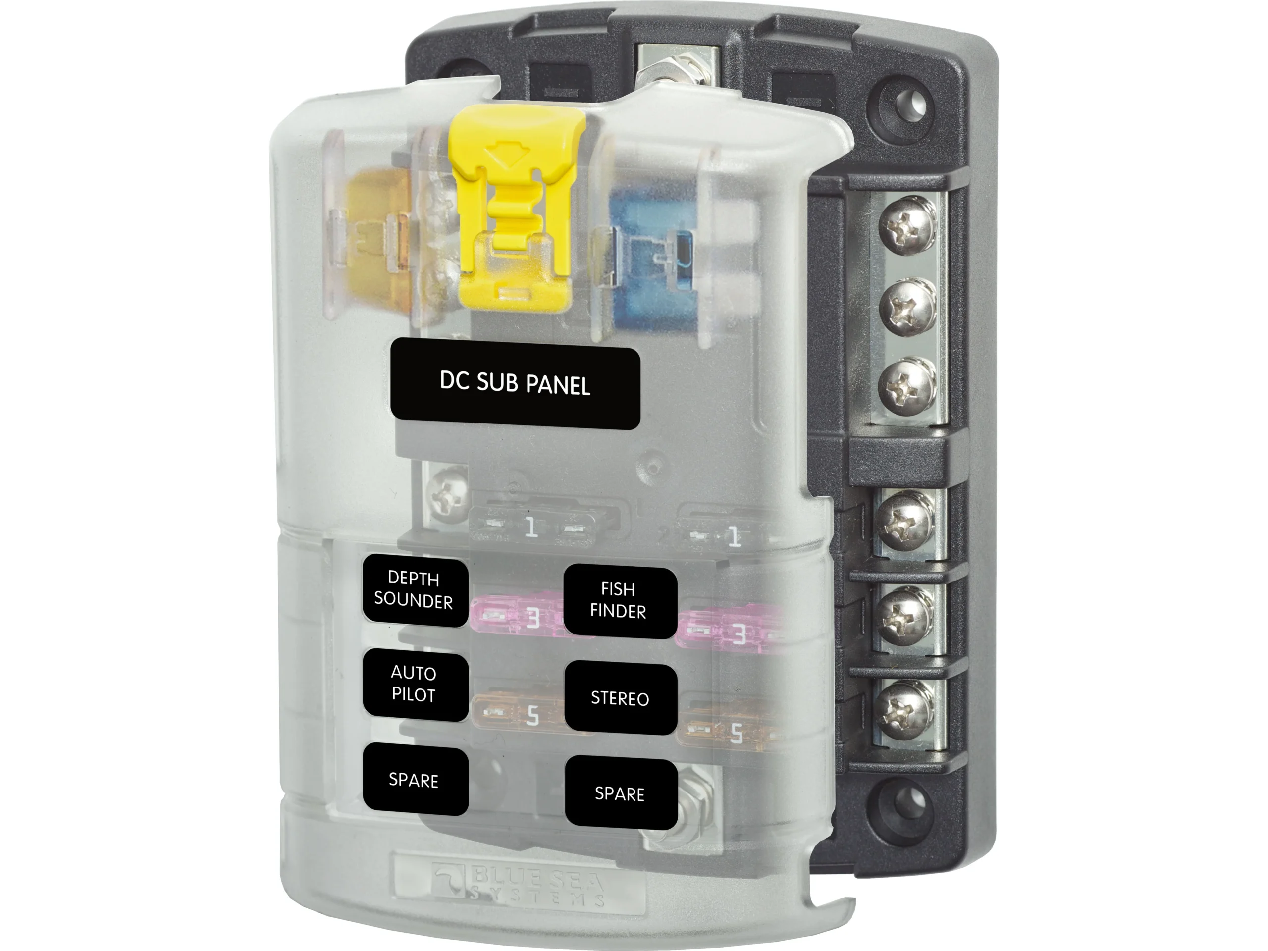 Blue Sea Systems ST Blade Fuse Block – 6 Circuits with Negative Bus and Cover