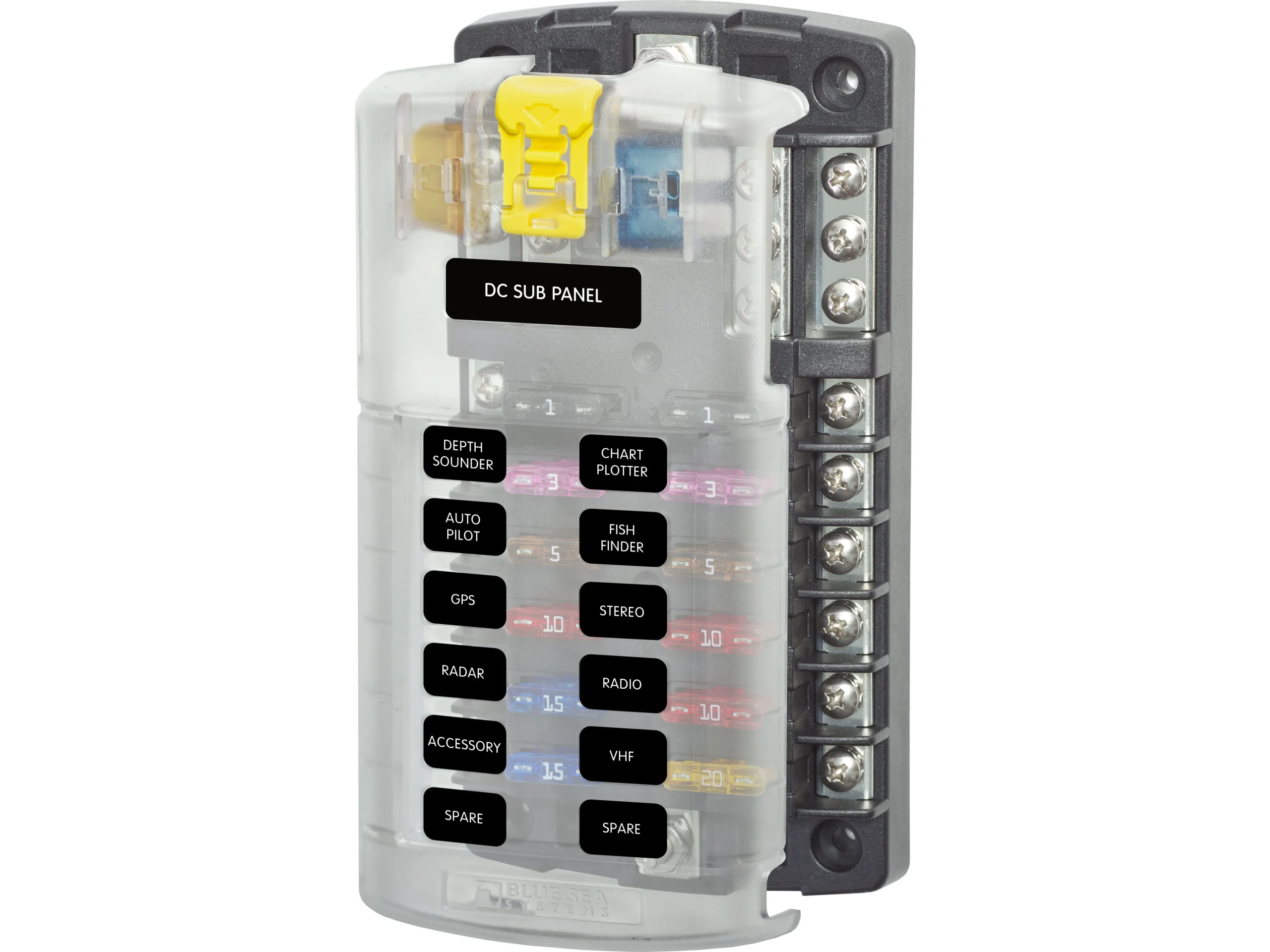 Blue Sea Systems ST Blade Fuse Block – 12 Circuits with Negative Bus and Cover