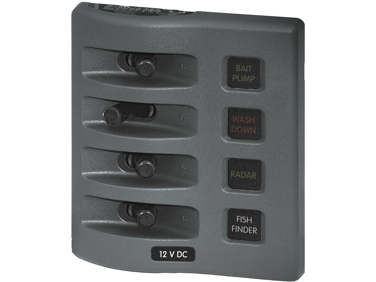Blue Sea Systems Weather Deck 12V DC Waterproof Fuse Panel – Gray 4 Positions