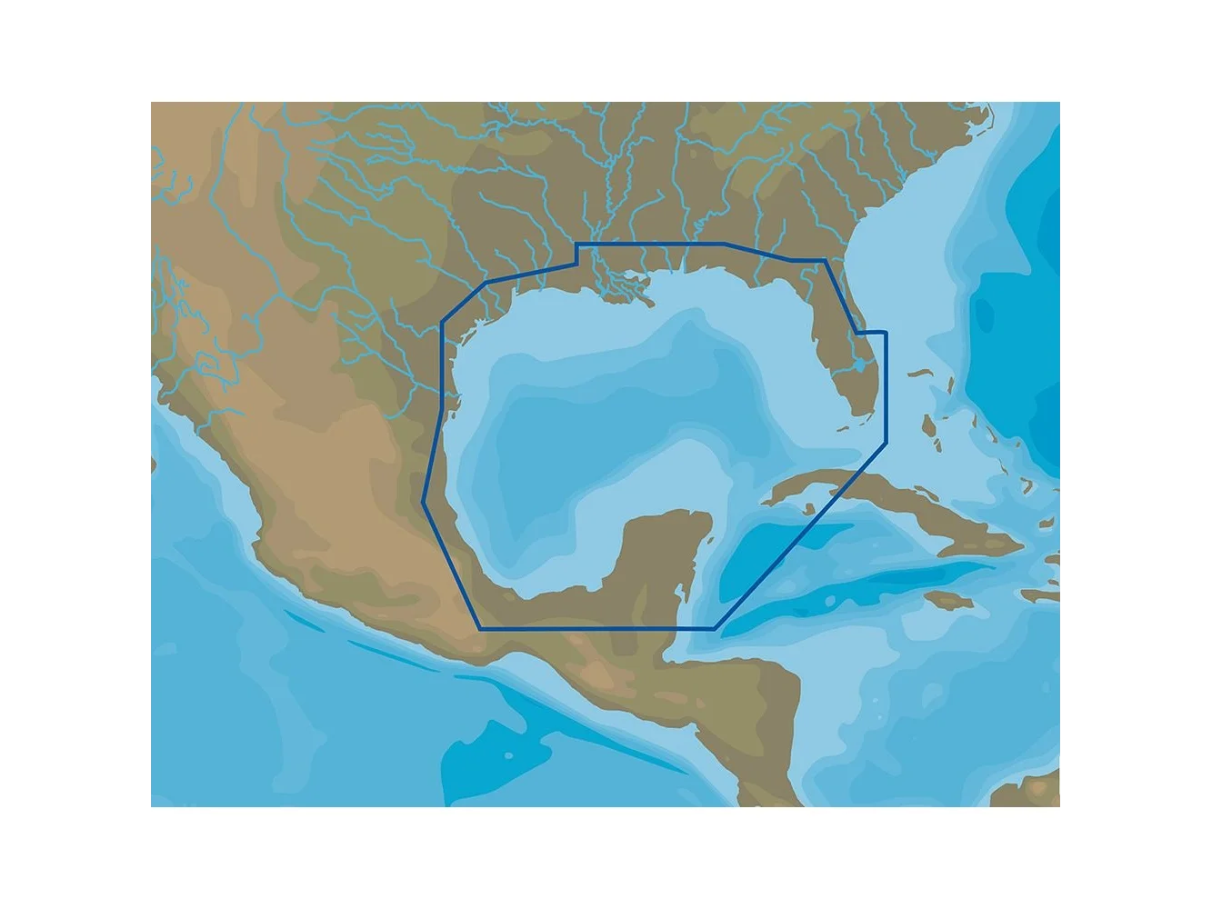 C-MAP 4D, Gulf of Mexico 4D Wide Chart on SD/Micro-SD Card, Gulf of Mexico, MFG# M-NA-D064-MS, with vector and raster charts, satellite imagery, hi-res bathy data, tides & currents, port info, and can be viewed in 2D or 3D.