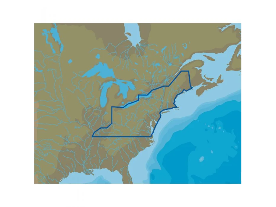 Coverage Area: Lakes and major rivers of North East region of USA, including states of: Maine, Vermont, New York, New Jersey, New Hampshire, Massachuesetts, Connecticut, Delaware, Maryland, Virginia, West Virginia, Kentucky, Ohio, Pennsylvannia. Includes coastal coverage of Atlantic Ocean and Chesapeake Bay, Hudson River, Cape Cod, Long Island Sound, more.