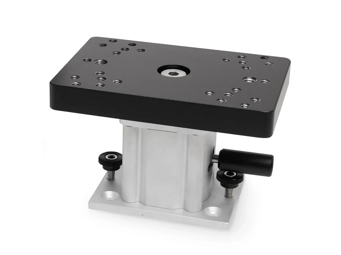 For surface or track mounting, this smooth-action swivel base rotates 360°, with 16 locking points spaced every 22.5°. The top plate is pre-drilled and tapped for mounting Cannon downriggers (and other downrigger brands).