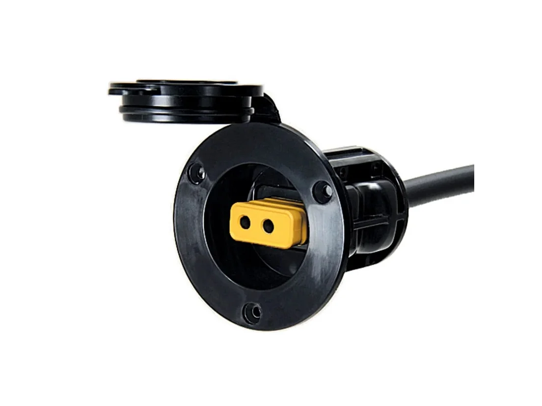 The Power Port allows for quick thru-hull connection to all Cannon electric downriggers manufactured 2008 or later. It quickly connects to the yellow female battery end plug from your electric downrigger, with no need to cut or splice wires. The watertight cover and gasket shield your downrigger plug from corrosion when not in use.