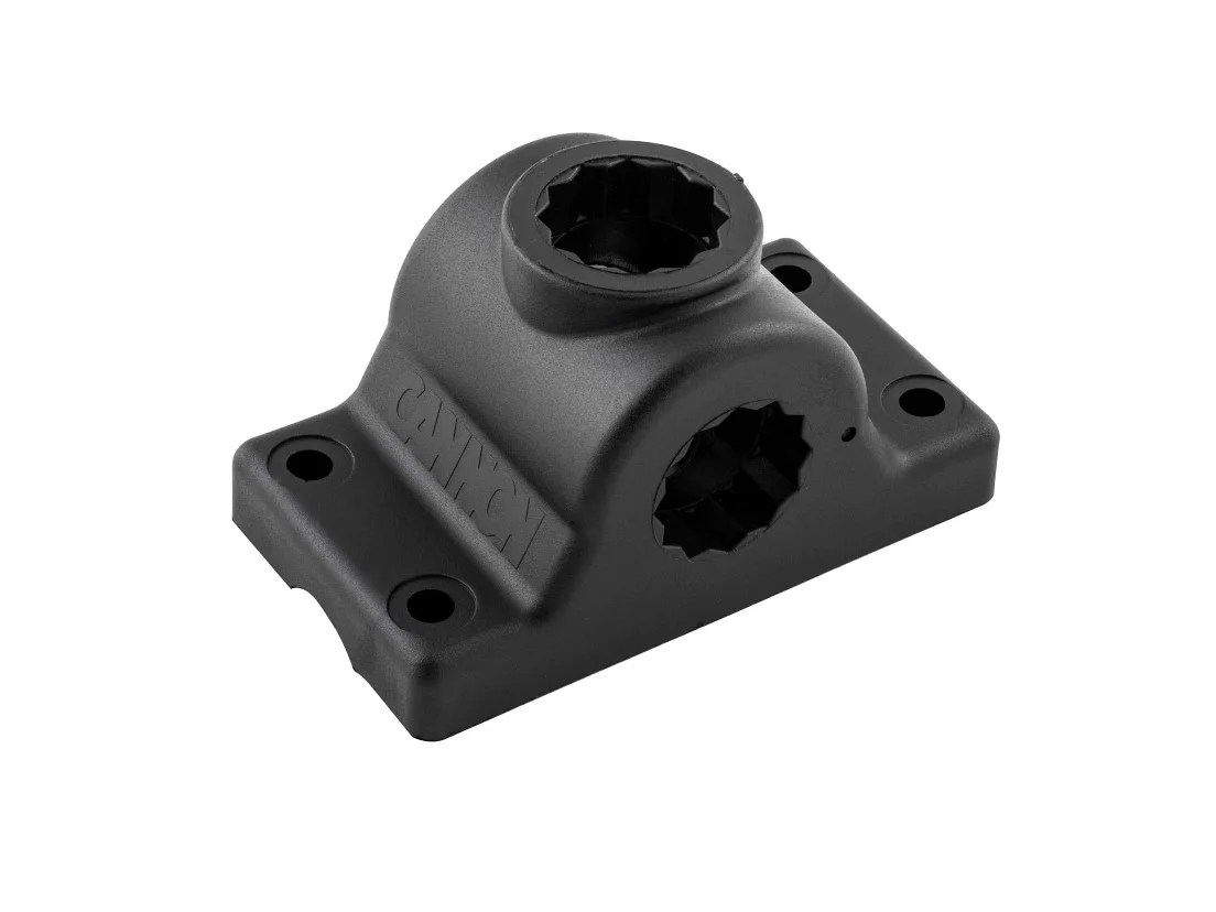 - Adapter for mounting three-position adjustable rod holders to side/deck.
