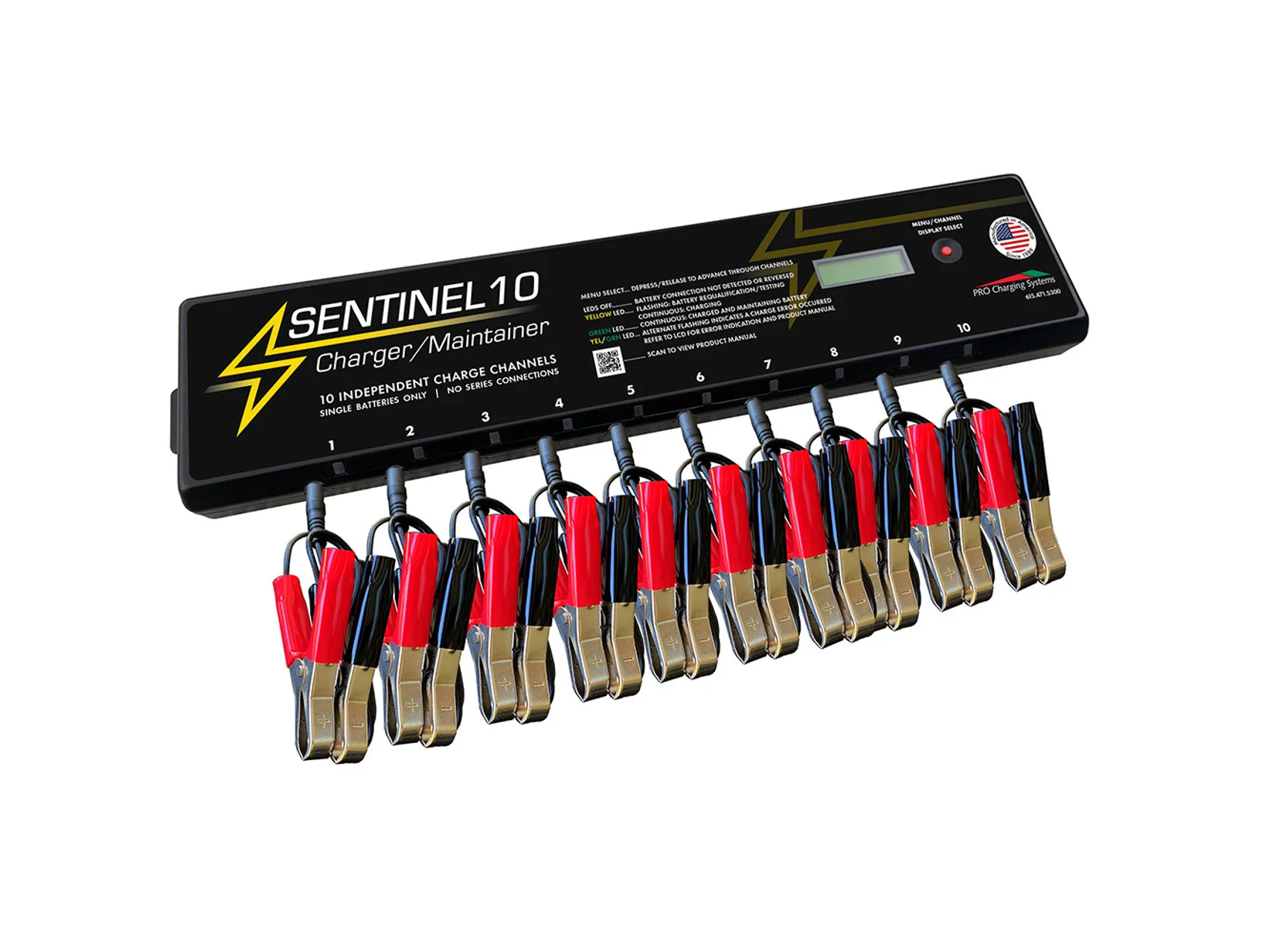 Pro Charging Systems new Sentinel 10 Charger/Maintainer is one of Pro Charging Systems newest innovations. The product will charge and maintain from 1 to 10 batteries of the same voltage simultaneously and independently. The unit is intelligent utilizing a series of algorithms that allow you to choose the profile best suited for your batteries including 6,8 or 12 volt Lead Acid, AGM or Gel batteries.