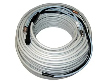 The Furuno 001-341-820-00 is a 20m radar sensor cable assembly consisting of two cables joined together as a Siamese cable. The data cable portion is supplied with RJ45 (Ethernet) connections on each end. The power cable portion is supplied with a 3-pin connector for the display end while the DRS end of the cable has no connector.
