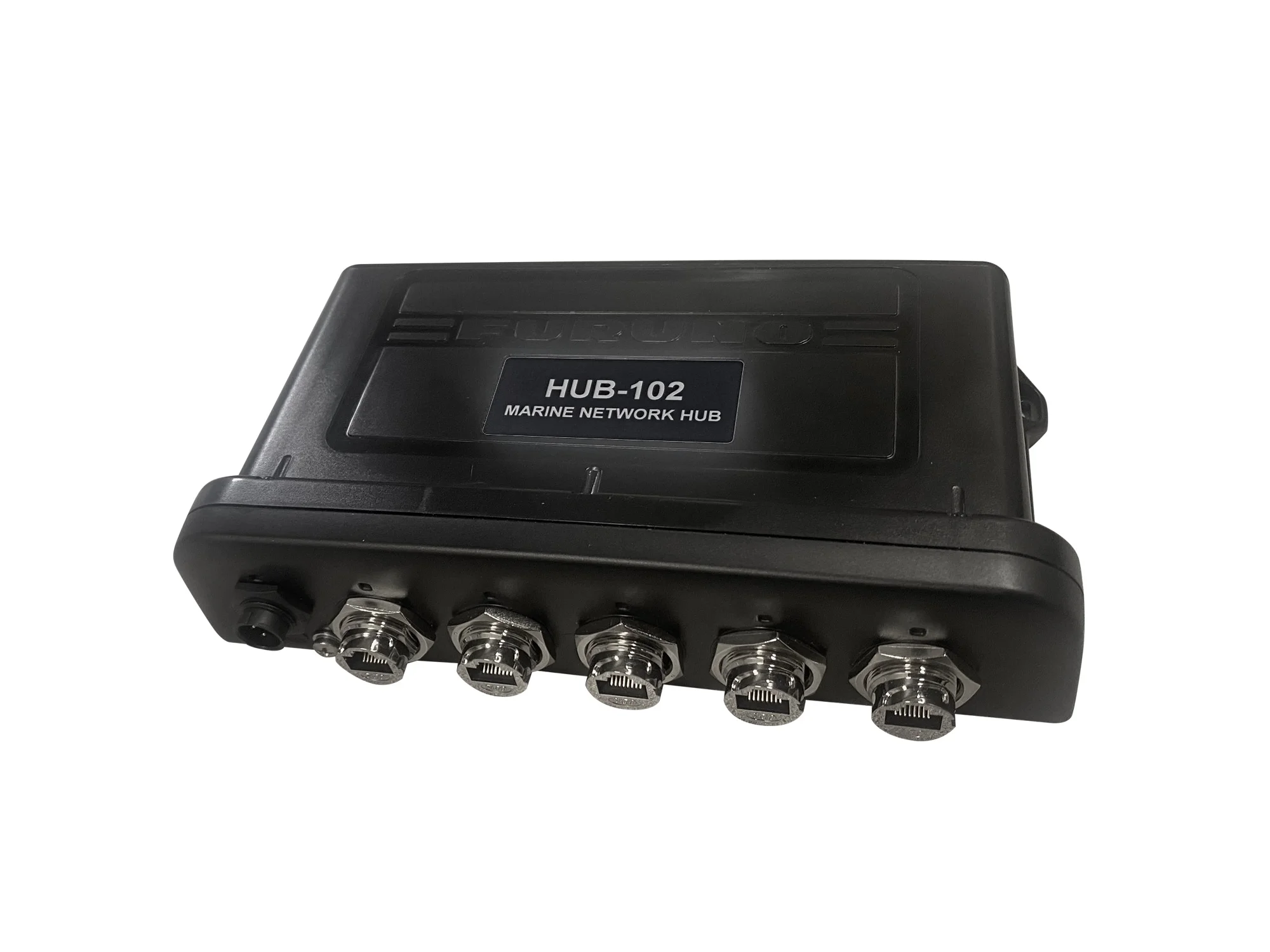 The HUB102 is a waterproof, 5-port Ethernet Hub for use with the NavNet series of Multi Function Displays.