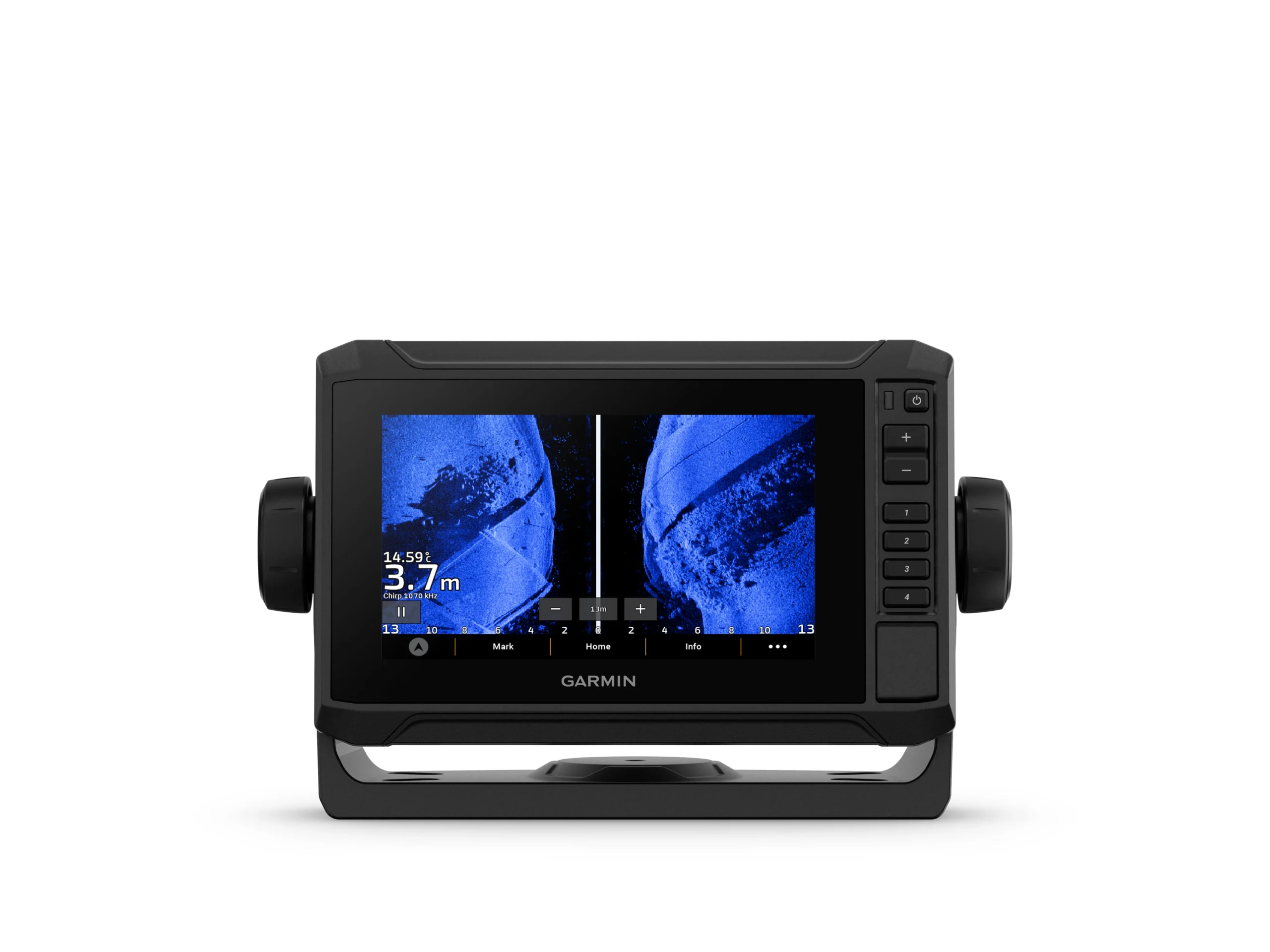 - Easy-to-use 6" chartplotter with a bright, sunlight-readable touchscreen display