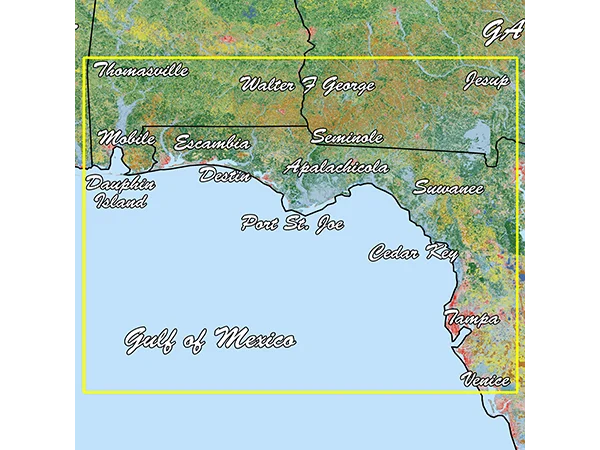 Sectioned coastal aerial overlay provides high-resolution imagery, local names of waterways and land features, outlined Wildlife Management Areas and Offshore Lease Areas plus added value from Standard Mapping’s pro staff.