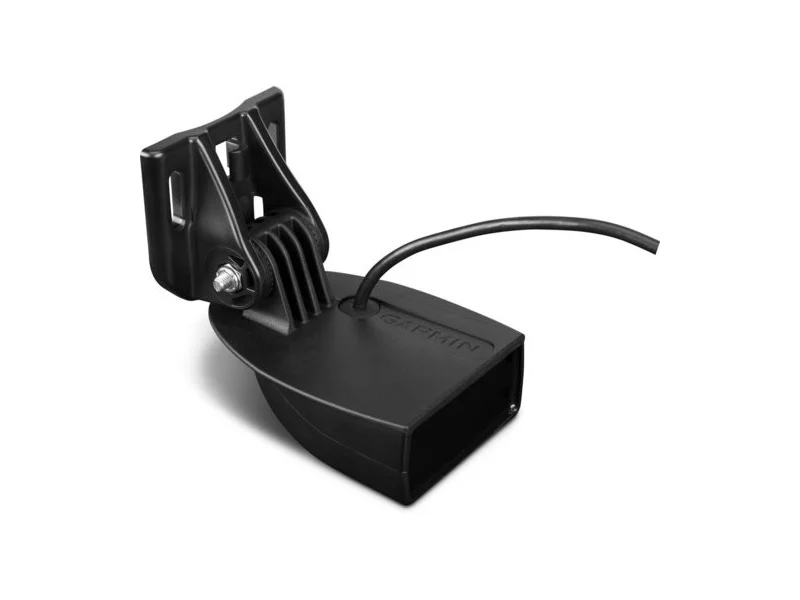 The 8-pin transducer features mid-band CHIRP traditional sonar (85-165 kHz) and has a power rating of 600 W. It can be mounted on the transom.