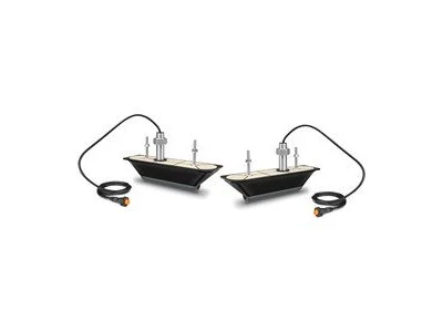 These transducers with built-in fast response temperature sensors have a power rating of 500 W per element (1,500 W total); a depth of 750 ft (ClearVü) and 500 ft left and right (SideVü); an operating frequency of CHIRP 455/800 kHz ; for hull deadrises from 5 degrees to 25 degrees. Pair them with your GCV™ 10 scanning sonar module.