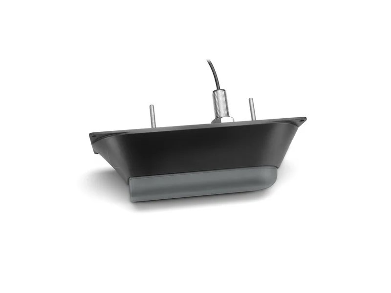 The CHIRP ClearVü/ SideVü elements have a power rating of 500 W per element and operating frequencies of 260/455 kHz. The traditional CHIRP sonar has a power rating of 600 W and operating frequencies of mid-band CHIRP 80-160 kHz. It includes a built-in fast-response temperature sensor. For hull deadrises less than 5 degrees.