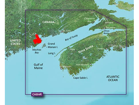 Detailed coverage of the coasts of Maine and New Brunswick from Machias Bay, ME to Saint John, NB. Also covers in detail the western half of Nova Scotia from Digby to Cape Lahave Island and from Heckmans Island to Halifax. General coverage is available from Cape Lahave Island to Heckmans Island. In addition, general coverage of the eastern half of the Bay of Fundy, extending to Chignecto Bay and Minas Basin.