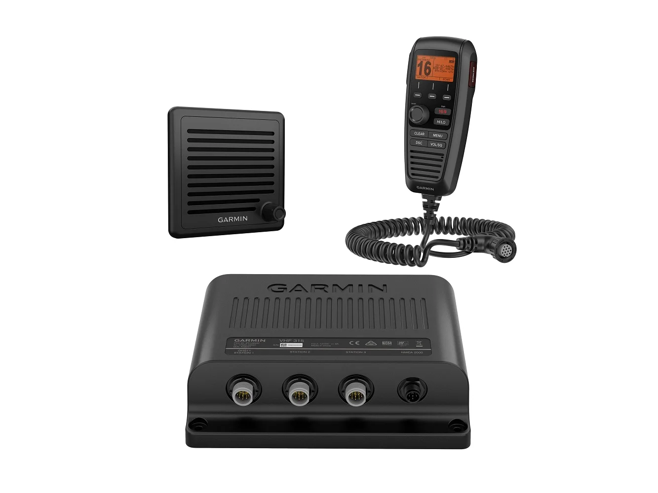 The 25-watt VHF 315 marine radio with Class D DSC is a modular communication solution. It provides the security of reliable communication and full NOAA weather alerts on the water by meeting the latest industry standards. It’s easy to use and integrates seamlessly into the Garmin onboard system. It has a built-in GPS receiver with connector for required external antenna. VHF 315 includes a GHS 11 handset and new active speaker to use as an intercom between up to 3 stations. It’s also equipped with a two-way 30-watt hailer system for communication with other boats or deckhands. NMEA 2000 connectivity enables easy integration with compatible chartplotters, multifunction displays and convenient software updates. Simplified handset connectors and an uncomplicated, easy-to-use interface allow you to get your radio set up quickly, so you can get back out on the water and start communicating.