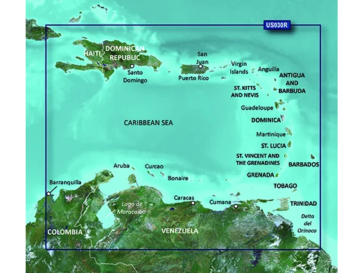 Covers the Caribbean from Haiti to Trinidad & Tobago including Puerto Rico and all of the Lesser Antilles. Also includes the Colombian and Venezuelan coasts from Barranquilla, Colombia to the mouth of the Orinoco River, including Lake Maracaibo and the Gulf of Paria.
