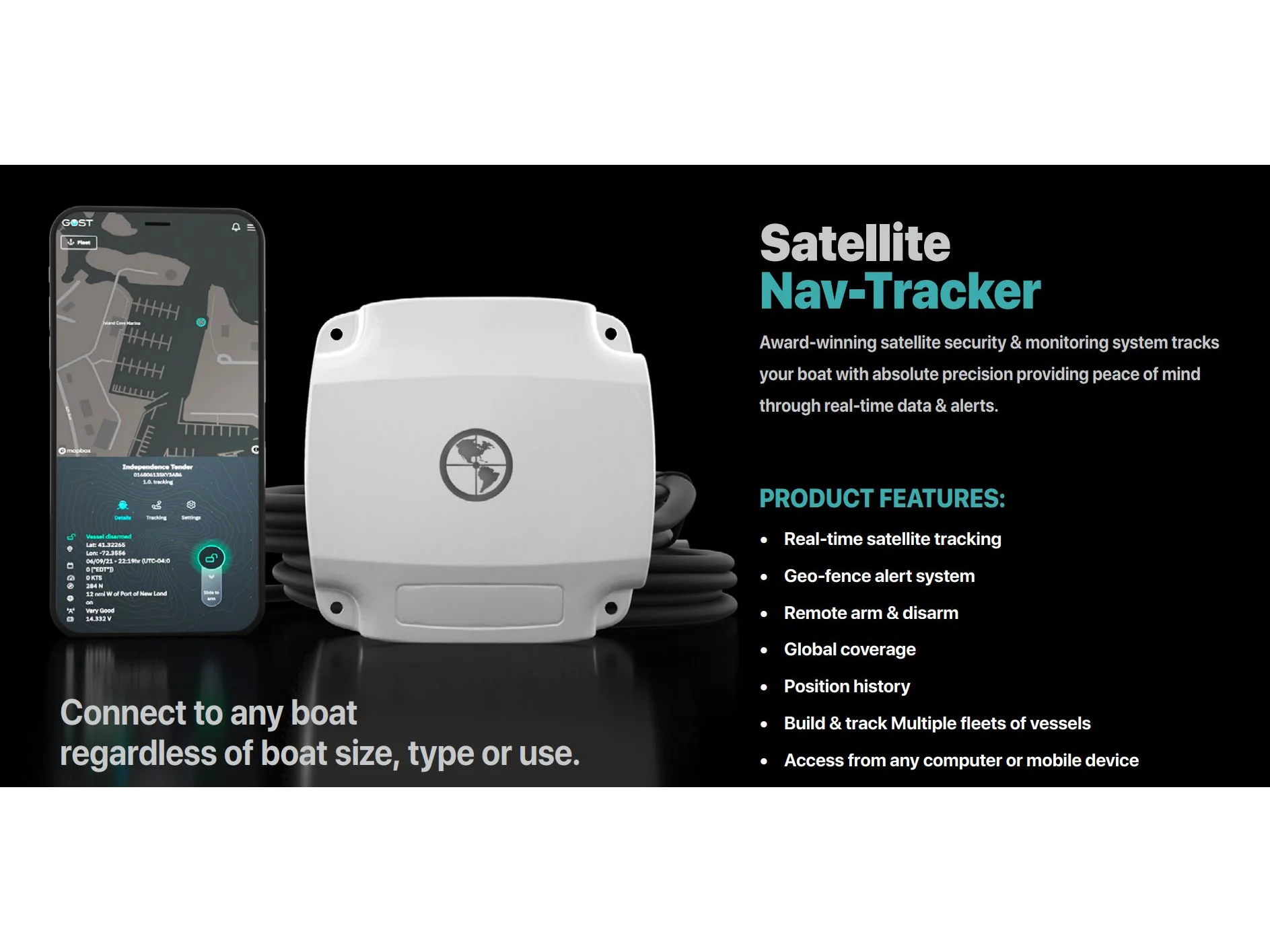 NEW GOST Nav-Tracker ELITE IDP was developed to offer a Hardwired marine grade, water resistant, monitoring and tracking system that provides global arm/disarm over satellite from anywhere in the world with the reassurance of a battery back-up which will notify you with a ‘Monitoring Alert’ if your batteries are either cut off completely or if the battery voltage reaches 10.2VDC so it also functions as a battery low voltage sensor for the battery it is connected to. The system can be controlled and monitored remotely, no matter where the vessel is located globally, with the exception of the most extreme poles