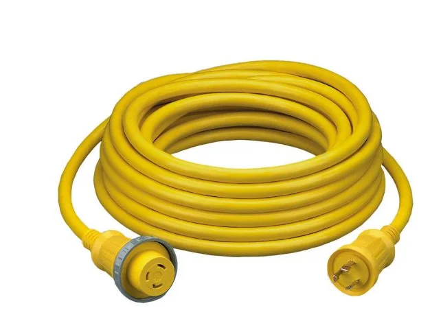 Locking Devices, TwistLock, Marine Grade, Ship to Shore Cableset, 30A 125V, 2-Pole 3-Wire Grounding, L5-30, Yellow