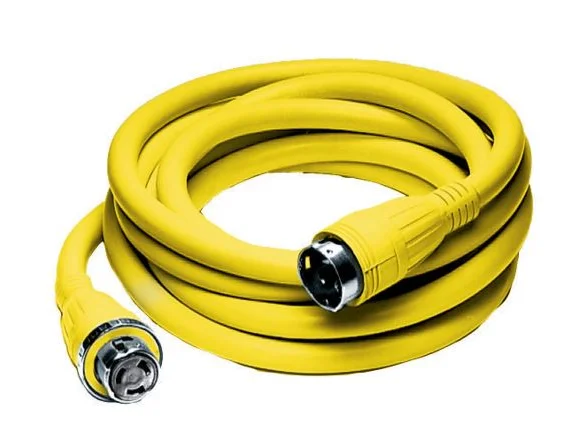 Locking Devices, TwistLock, Marine Grade, Ship to Shore Cableset, 50A 125V, 2-Pole 3-Wire Grounding, L5-30, Yellow