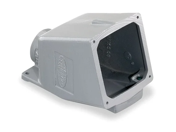 Heavy Duty Products, IEC Pin and Sleeve Devices, Industrial Grade, Accessory, Back Box, For 100A 1 1/2″ NPT Hub, Angled, Mounting ScrewsIncluded, Gray Cast Aluminum