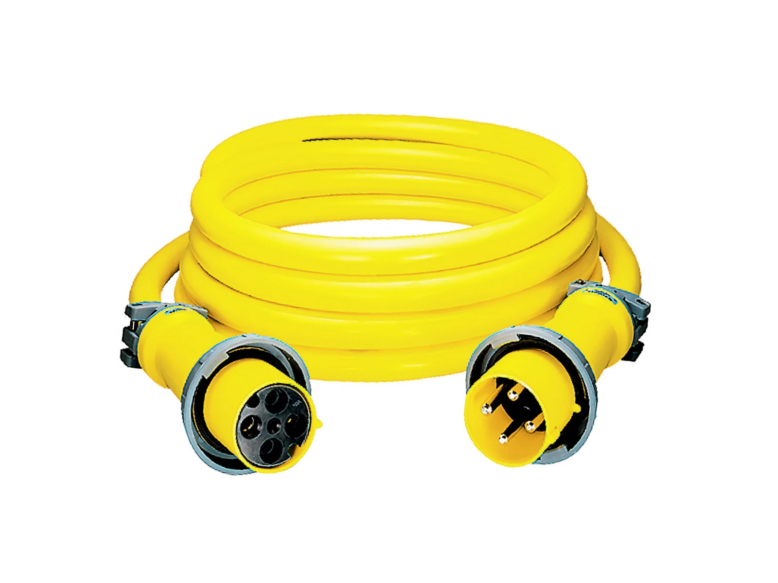 Heavy Duty Products, IEC Pin and Sleeve Devices, Marine Grade, Ship to Shore, Cable Set, 100A 125/250V, 4-Pole 5-Wire Grounding, Pre-Wired, Yellow, For Boats With Isolation