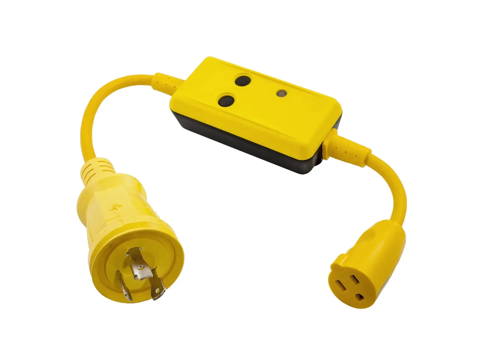 Ground Fault Portable Unit, Marine GFCI Adapter, 30A 125V to 15A 125V, Yellow