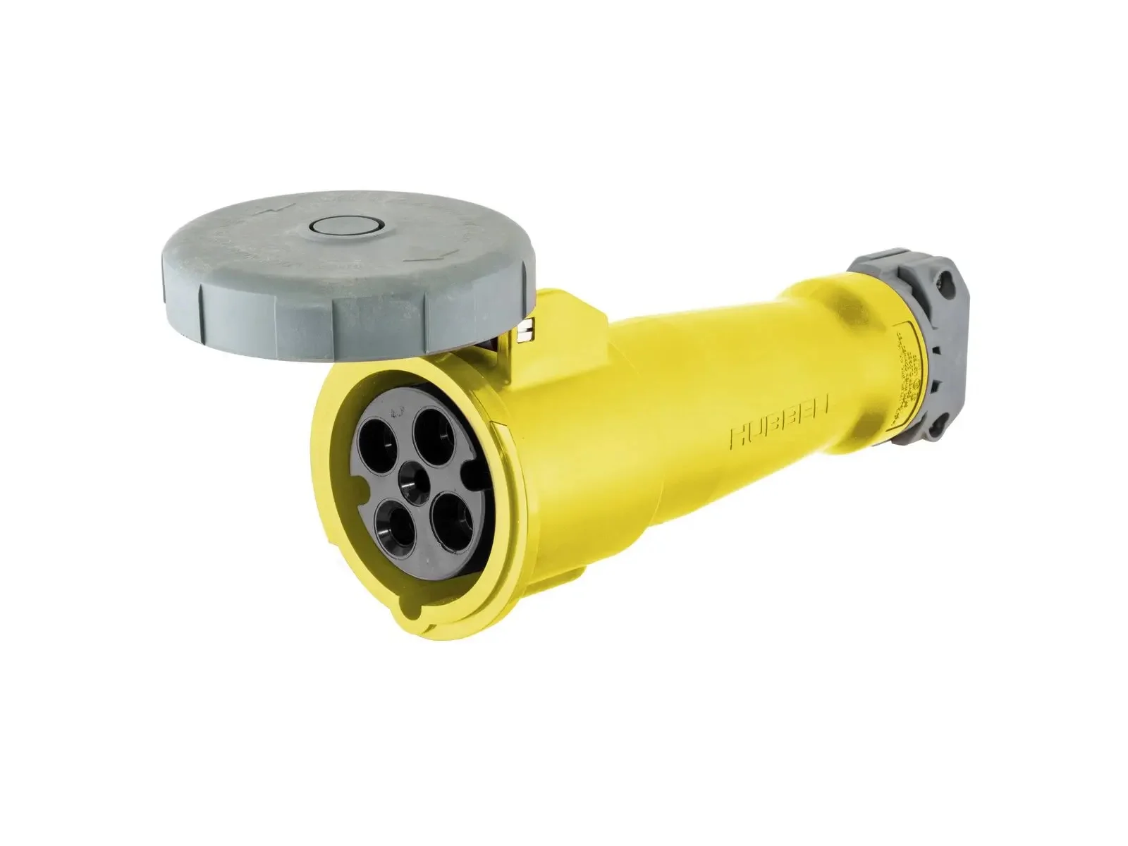 Yellow Zytel® super tough nylon watertight connector body for making plug to connector interface on extension cords or adapters. Cord grip range is 1.00?1.94 in. (25.4?49.3). Note: It cannot be mated to the shore power inlet.