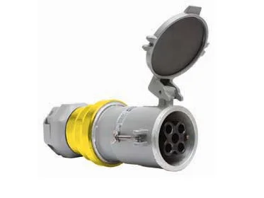 Gray/yellow metallic watertight plug with locking ring to make plug/receptacle interface watertight. Cord grip range is #1 AWG-250 MCM (0.653 max. conductor diameter)