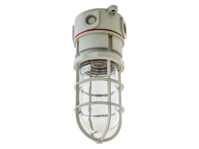 Ceiling mount non-metallic, vapor-tight incandescent luminaries including the fixture, mounting box, guard and heat resistant glass globe. Accepts up to 150 watt Type A incandescent lamp (not included).