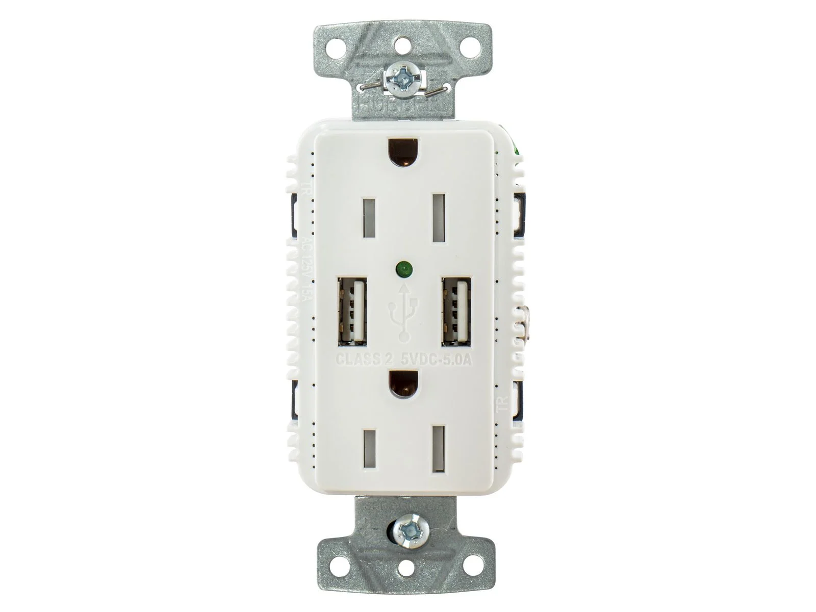 Hubbell USB15A5W White Outlet Dual 15 Amp 125v 2-Pole and Dual 5 Amp 5v USB Ports