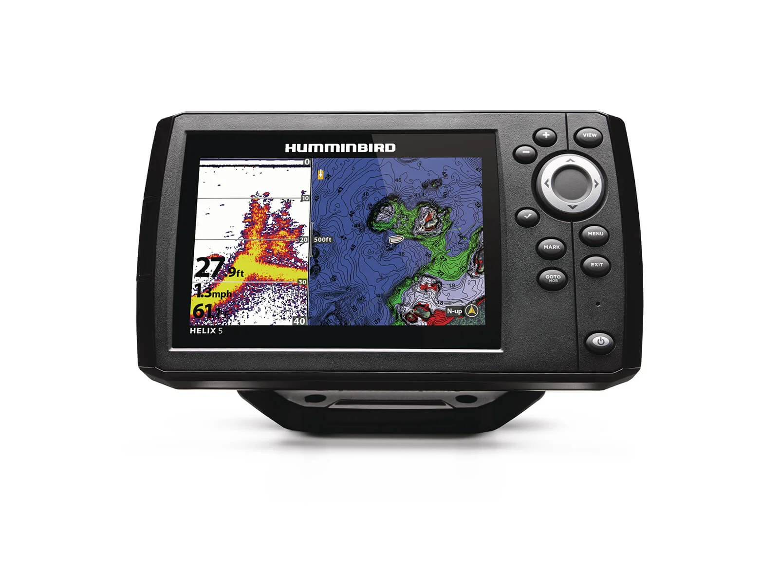 If fishing is in your DNA, there’s no such thing as “too early” or “too far.” The HELIX 5 Series answers the call with an uncompromising 5″ widescreen, color display. This HELIX 5 CHIRP GPS G3 model features Dual Spectrum CHIRP 2D sonar, internal GPS with Humminbird Basemap and AutoChart Live built-in, with additional compatibility for Humminbird and Navionics premium fishing charts.