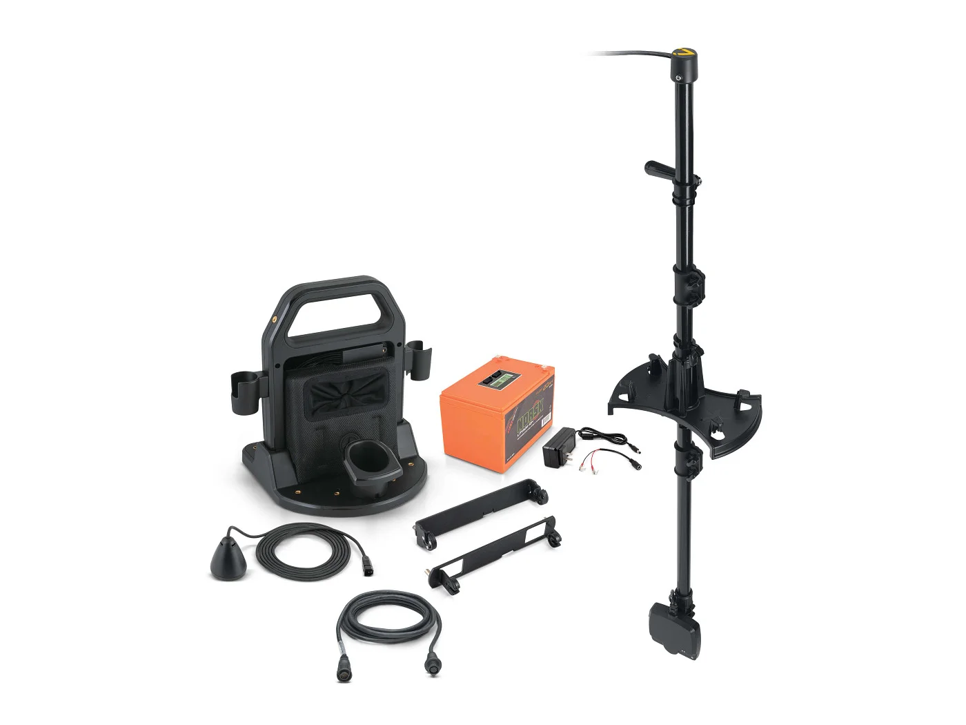- Premium Shuttle: It has it all. Master power switch, quick-connect SAE power cables, large handle, multiple 1/4″-20 mounting options for accessories, two rod holders, cable and transducer management, and a battery cover.