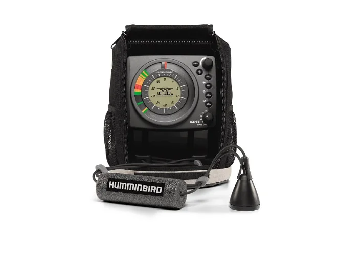 The ICE 55 ice fishing flasher has a 6-color, industry-best fiber-optic flasher display that offers unmatched performance and gives greater distinction between targets in the beam. It also features an extreme temperature LCD with digital depth and automatic depth scale. Its unique purple target line allows fishermen to set a visual indicator at a specific depth to know exactly how far to lower their jig. Professional-grade carrying case included. Rely on Humminbird ice flashers to find your spots and keep your cooler full.