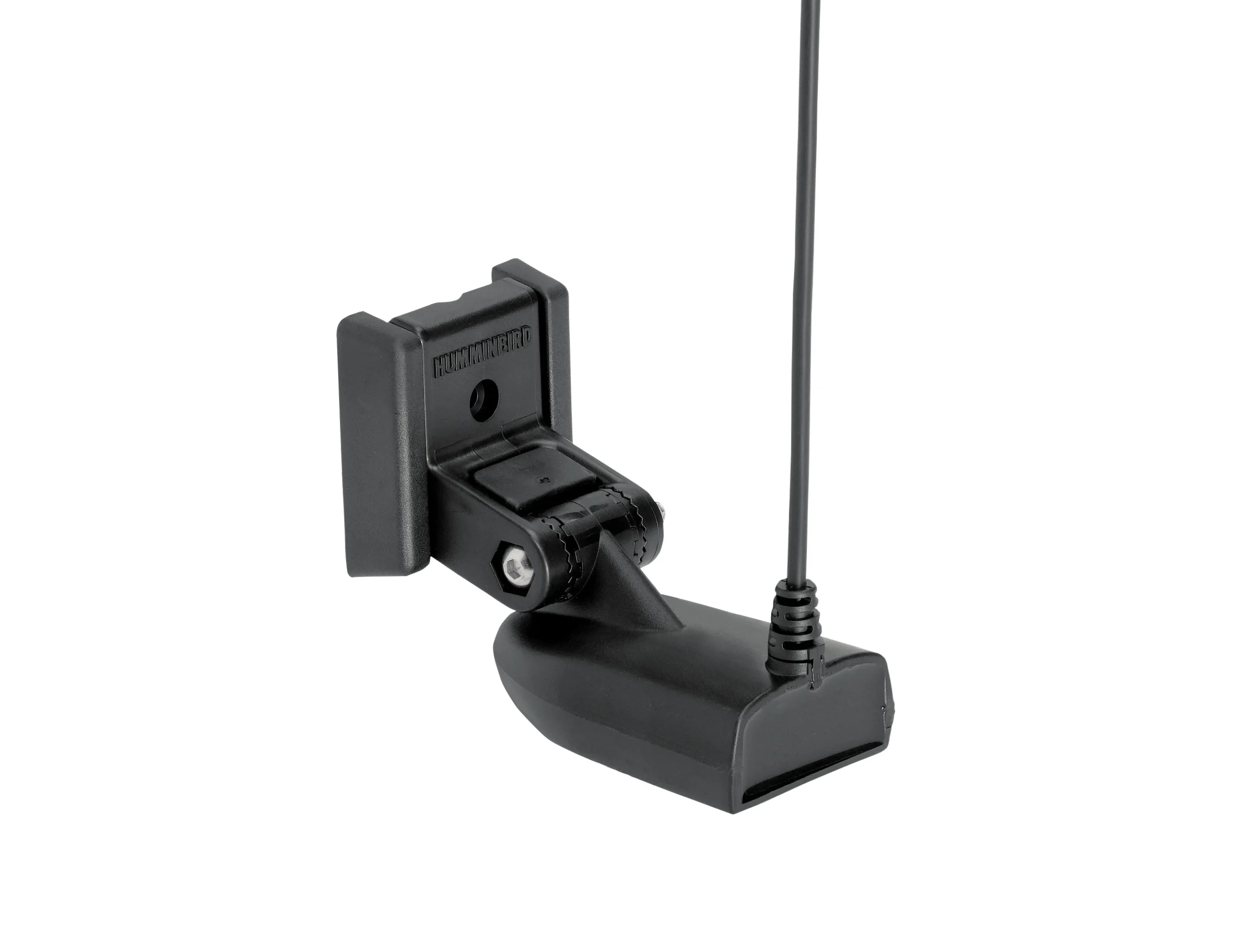 MEGA Side Imaging Transom Mount Transducer supports MEGA Imaging/455kHz and Dual Spectrum CHIRP 2D Sonar with a CHIRP range of 150-220kHz. Includes built-in temperature sensor, rugged composite design, impact-release mounting bracket and 20′ cable.