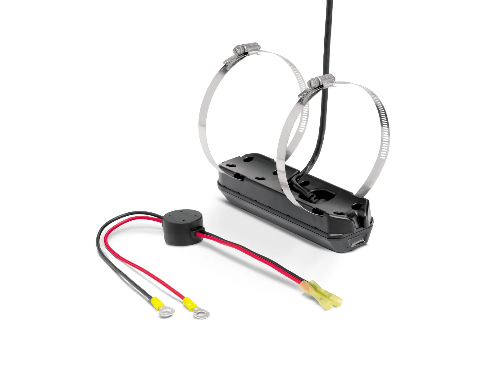 MEGA Side Imaging+ Trolling Motor Transducer supports MEGA Imaging+/800kHz/455kHz and Dual Spectrum CHIRP 2D Sonar with a CHIRP range of 150-220kHz. Includes built-in temperature sensor, rugged composite design, trolling motor mounting hardware and 20’ cable.
