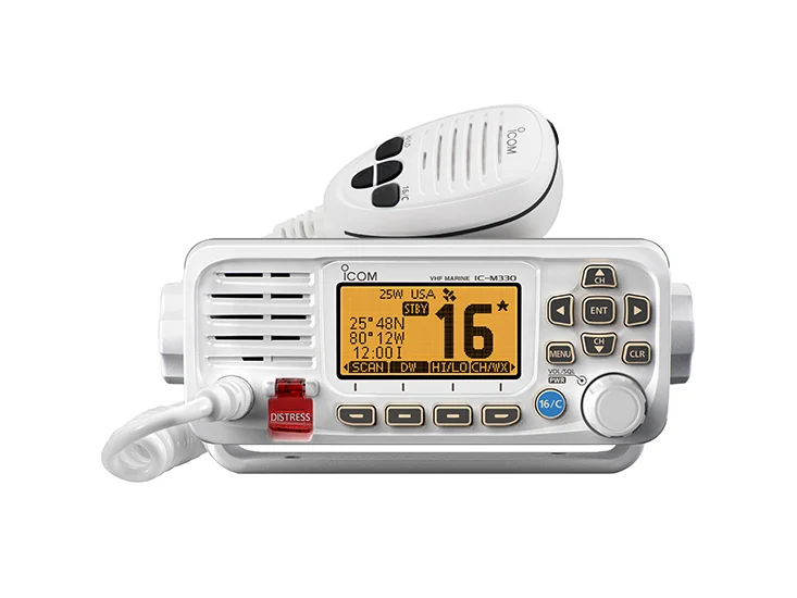 The M330 series gives you the same performance and feature set as the M324 series, but now within a smaller package to fit in tight spaces. Priced at a great value the M330 series still includes the exclusive AquaQuake™ draining feature, 25 watts of power, IPX7 Waterproof rating, scan/select scan and Icom’s exclusive user interface for ease of use.