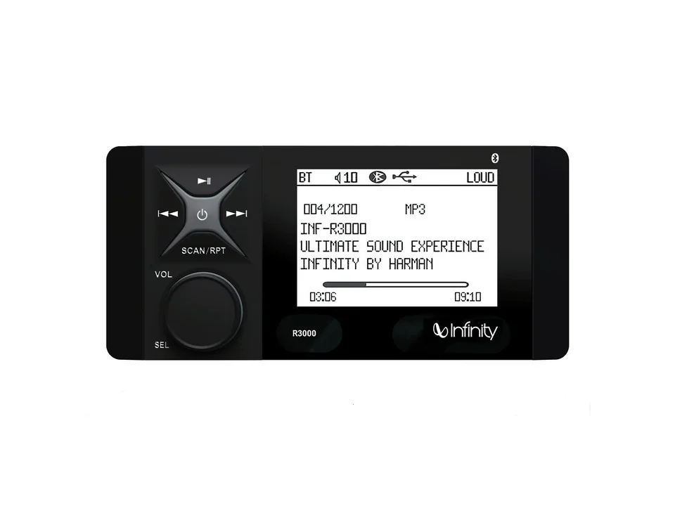 Inbfinity’s all new marine source unit, the INFR3000, is engineered to withstnd sun, salt, UV, and intense thunderstorms. If you’re looking to invest in reliable audio, invest in a radio that doesn’t require a 12v masters degree to understand. The Infinity audio brand has stood the test of time and they are proud to launch this INR3000 as the opener of the all new WAKE series.