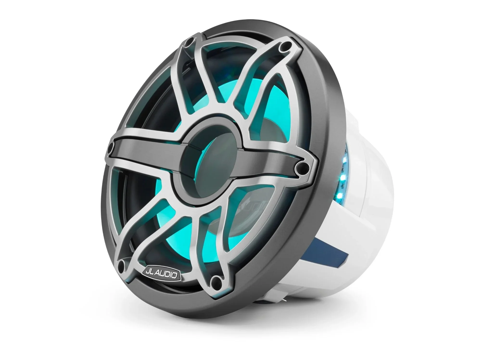 M6 10-inch Marine Subwoofer with Transflective™ LED Lighting for Infinite-Baffle Use (250 W, 4 ohms) – Gray Metallic Trim Ring, Titanium Sport Grille