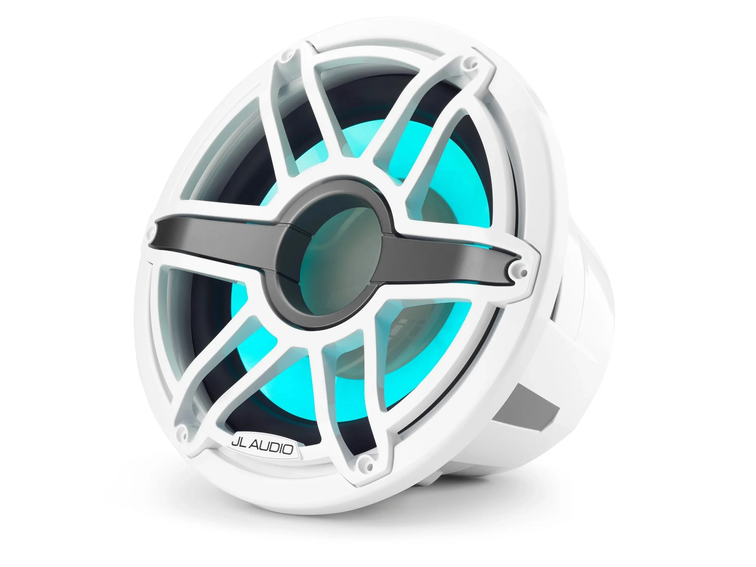 M7 12-inch Marine Subwoofer with Transflective™ LED Lighting for Infinite-Baffle Use (600 W, 4 ohms) – Gloss White Trim Ring, Gloss White Sport Grille.