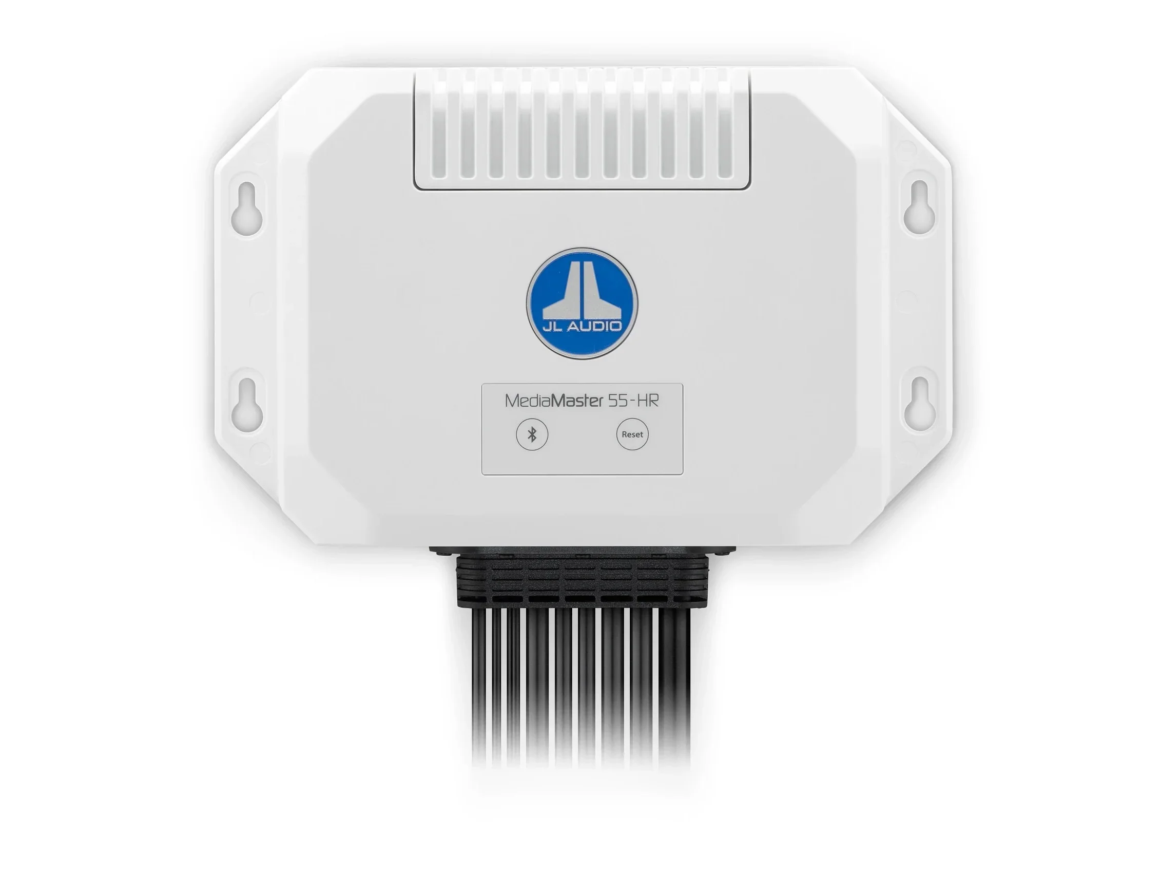 Engineered to deliver superb sonic excellence from integrated vessel applications, MediaMaster 55-HR is a premium hideaway receiver with all the features of the MediaMaster 55 source unit, less the physical controls and display screen. Outfitted with certified NMEA 2000® network connectivity, the MediaMaster 55-HR hideaway receiver can be controlled by your Garmin, Lowrance, Raymarine or Simrad multifunction Display (MFD) or a JL Audio MMR-40 network controller (sold separately).