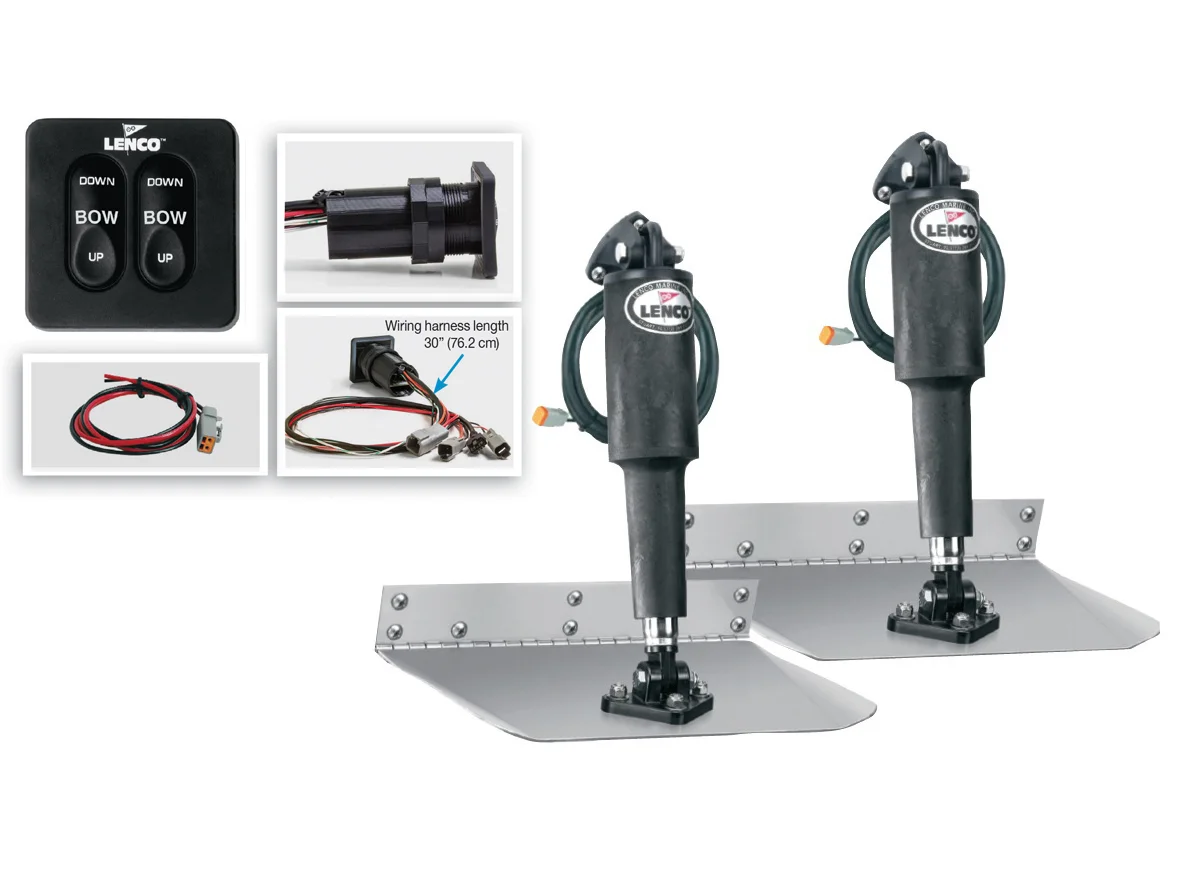 Everything you need in one box! The Standard trim tab kit with the added benefit of having the NEW integrated switch choice & power connector all included. Boat lengths 16’ (4.9 m) to 30’ (9.1 m). Blades are constructed of 12 gauge (2.7 mm) laser cut 304 stainless steel with a 5/8" (1.6 cm) flared trailing edge & 1/8" (3.2 mm) diameter hinge pin. Upper and lower high impact corrosion proof mounting brackets with mechanical cable gland seal. Switch included.
