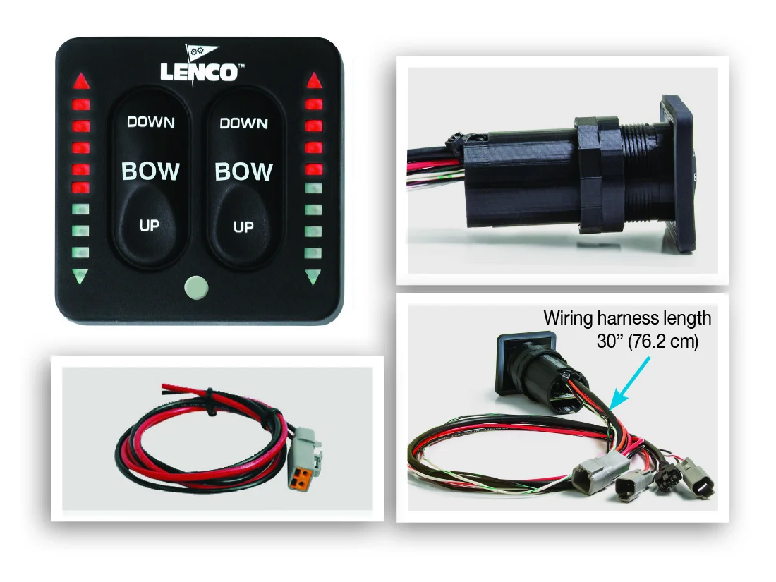 Complete your Lenco trim tab system with the latest, maintenance-free (ALL-IN-ONE) integrated tactile switch kit design. This NEW switch technology improves accuracy and integrates the control box functionality into the key pad bezel. LED indicator lights let you know exactly where your trim tabs are at all times. A backlit keypad automatically illuminates graphics for night viewing. A photo eye reads ambient light and adjusts the indicator intensity for optimum viewing in all lighting conditions.