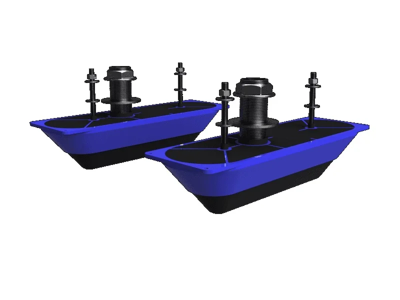 These transducers are designed for boats with steep or variable deadrise hull angles, for seamless display of SideScan and DownScan and 3D Imaging.